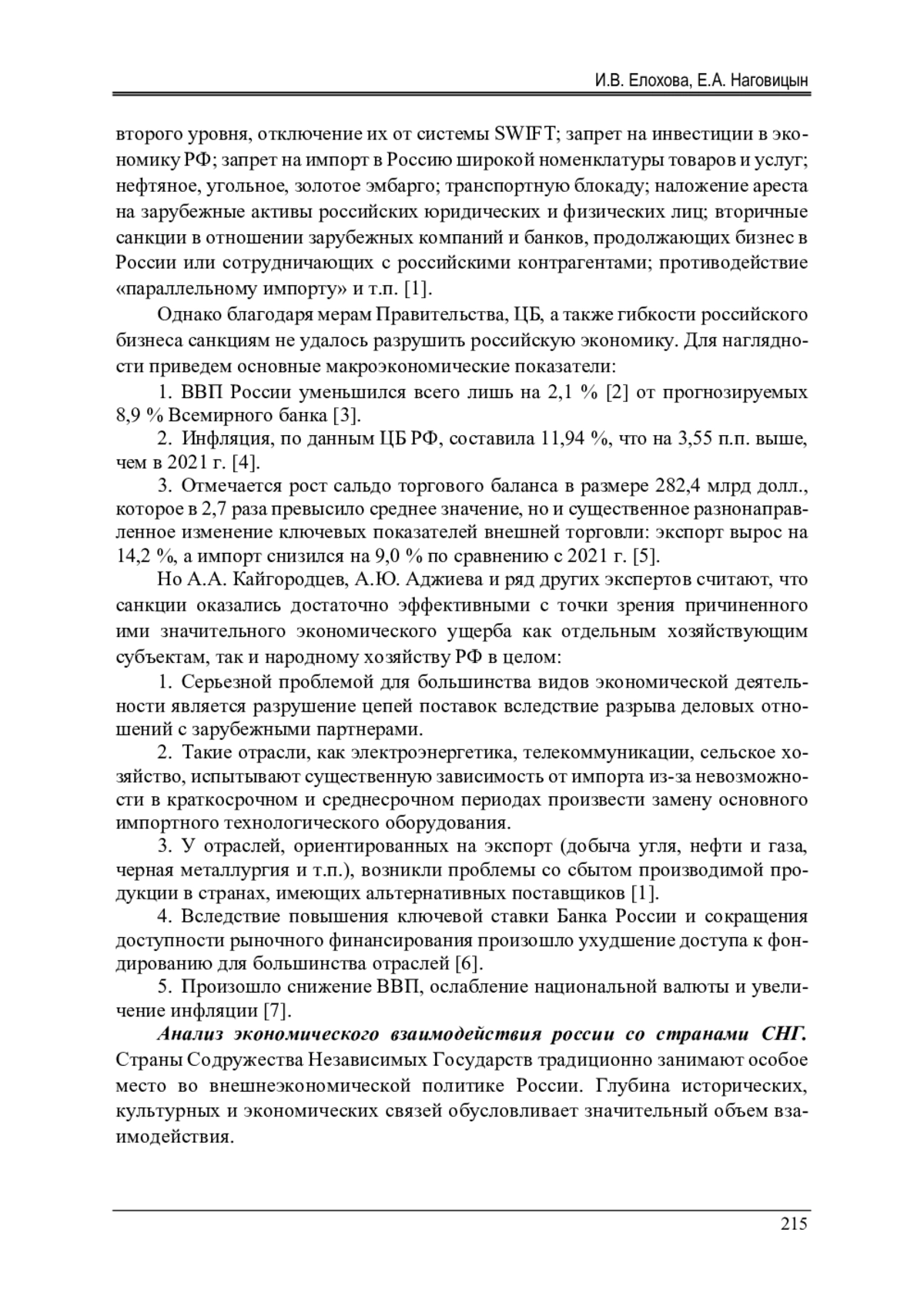 5. Нарбут, В.В. Векторы развития внешней торговли России в условиях санкций / В.В. Нарбут, Е.П. Шпаковская // Вестник Института экономики Российской академии наук. - 2023. - № 2. - С. 131-148. EDN: WMGUSN