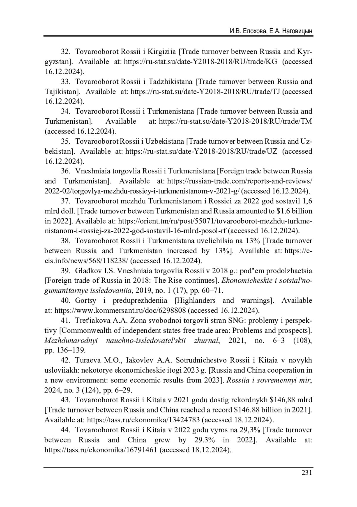 37. Товарооборот между Туркменистаном и Россией за 2022 год составил 1,6 млрд долл. [Электронный ресурс]. - URL: https://orient.tm/ru/post/55071/tovarooborot-mezhdu-turkmenistanom-i-rossiej-za-2022-god-sostavil-16-mlrd-posol-rf TJ (дата обращения: 16.12.2024).