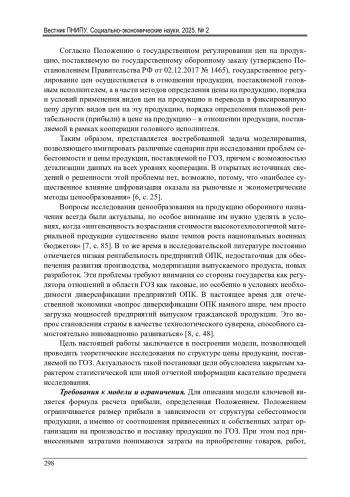Введение. Определение цены на продукцию, поставляемую по государственному оборонному заказу (ГОЗ), является предметом исследования многих авторов, в том числе тех, кто не имеет доступа к отчетным данным реальных предприятий оборонно-промышленного комплекса (ОПК).