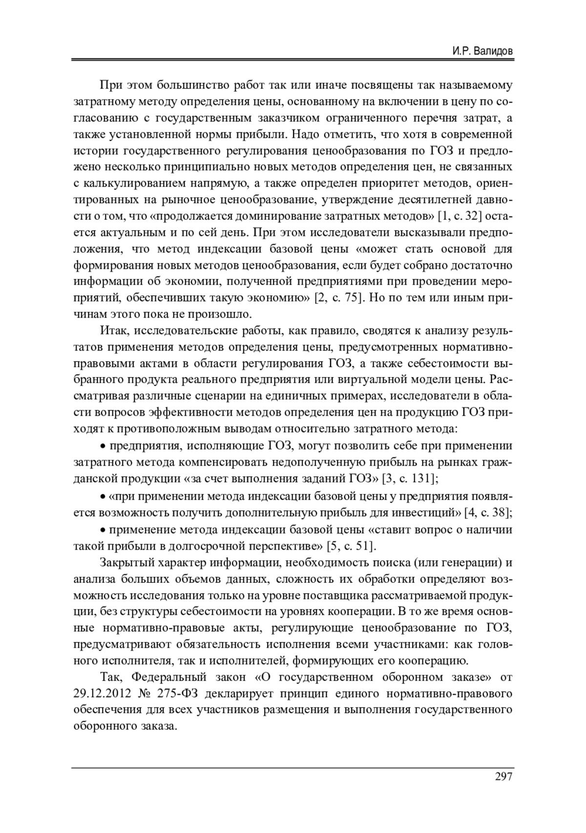 5. Валидов, И.Р. Метод индексации базовой цены: мотивационная модель формирования цен на продукцию, поставляемую по государственному оборонному заказу / И.Р. Валидов, А.Л. Кузнецов // Интеллектуальные системы в производстве. - 2022. - Т. 20, № 1. - С. 49-55. DOI: 10.22213/2410-9304-2022-1-49-55 EDN: ZETZKY