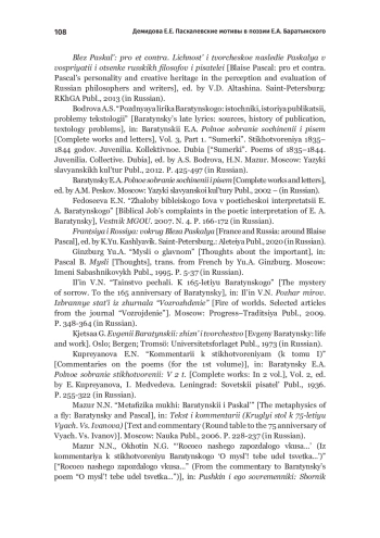 12. 	Мазур Н.Н. Метафизика мухи: Баратынский и Паскаль // Текст и комментарий (Круглый стол к 75-летию Вяч. Вс. Иванова). М.: Наука, 2006. С. 228-237. EDN: BKLVZF