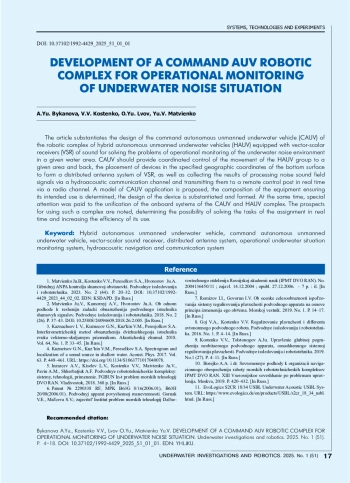 1. 	Матвиенко Ю.B., Костенко В.В., Переселков С.А., Хворостов Ю.А. Гибридный АНПА контроля шумовой обстановки // Подводные исследования и робототехника. 2023. № 2 (44). С. 20-32. DOI: 10.37102/1992-4429_2023_44_02_02