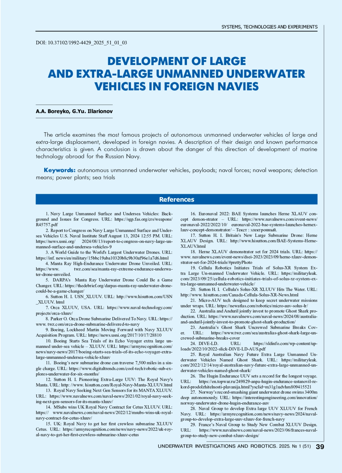 3. A World Guide to the World’s Largest Underwater Drones. URL: https://inf.news/en/military/15bbc19aba10320b8c9b30af96e1a7d6.html.