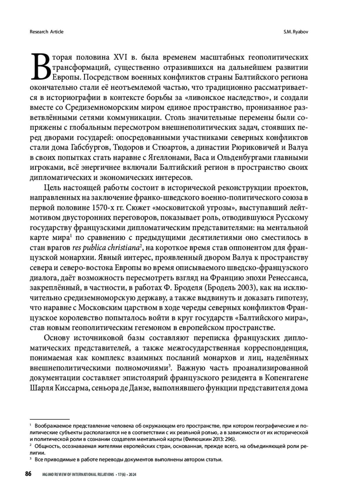 43. Рябов С.М. 2023. Послание Юхана III Васа французскому королю Карлу IX Валуа: новый источник по истории Балтийских войн. Quaestio Rossica. 11(3). С. 901-917.