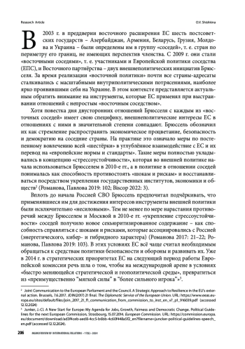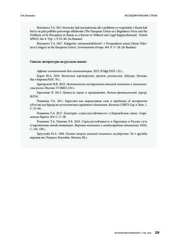 20. Романова Т.А, Павлова Е.Б. 2019. Стрессоустойчивость в Евросоюзе и Россия: суть и перспективы новой концепции. Мировая экономика и международные отношения. 63(6). С. 102. 109 с.