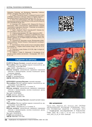 12. 	Ghis S., Fischer E. Record-Setting AUV Pipeline Inspection in Deepwater West Africa // Offshore Technology Conference. Houston, Texas, USA. 2017, P. 20-26.