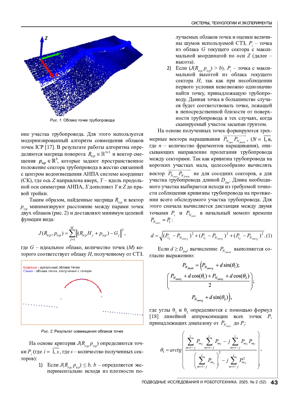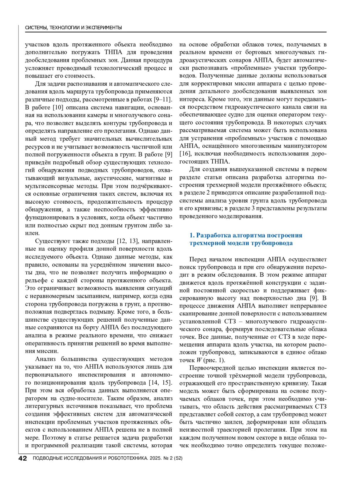6. 	Xiong C.-B., Li Z., Zhai G.-J., Lu H.-L. New method for inspecting the status of submarine pipeline based on a multi-beam bathymetric system // Journal of Marine Science and Technology. 2016. Vol. 24.