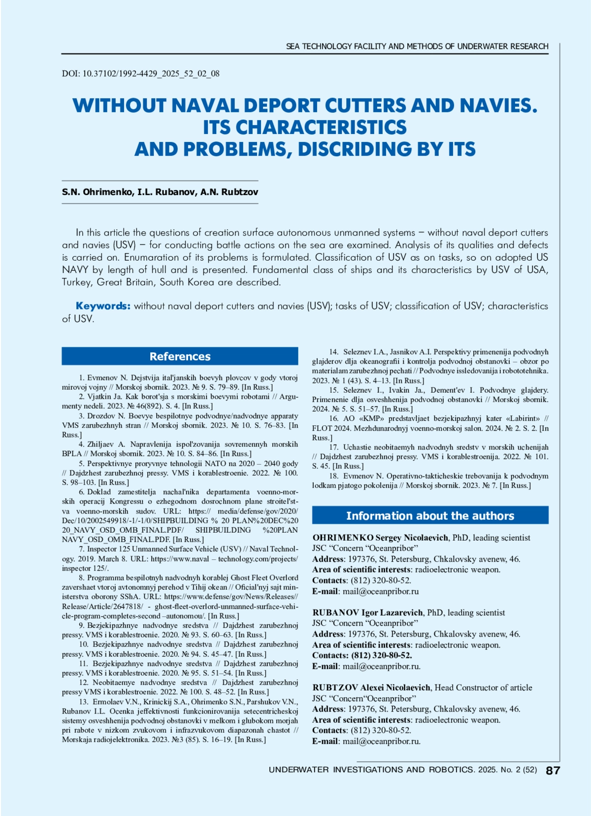 35. 	Uchastie neobitaemyh nadvodnyh sredstv v morskih uchenijah // Dajdzhest zarubezhnoj pressy. VMS i korablestroenija. 2022. № 101. S. 45. [In Russ.].
