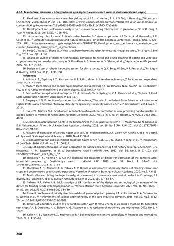 2. 	Современные технологии и специальная техника для картофелеводства / А. Ю. Измайлов, Н. Н. Колчин, Я. П. Лобачевский и др. // Сельскохозяйственные машины и технологии. 2015. № 3. С. 43-47. EDN: TTLVUJ