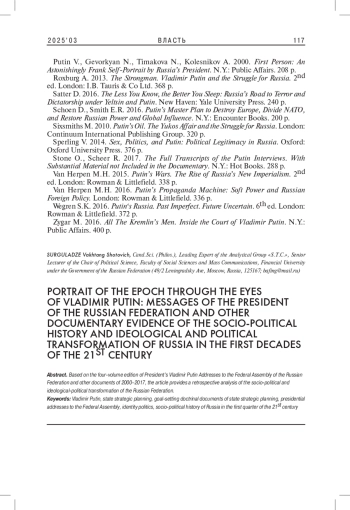 76. 	Sperling V. 2014. Sex, Politics, and Putin: Political Legitimacy in Russia. Oxford: Oxford University Press. 376 p.