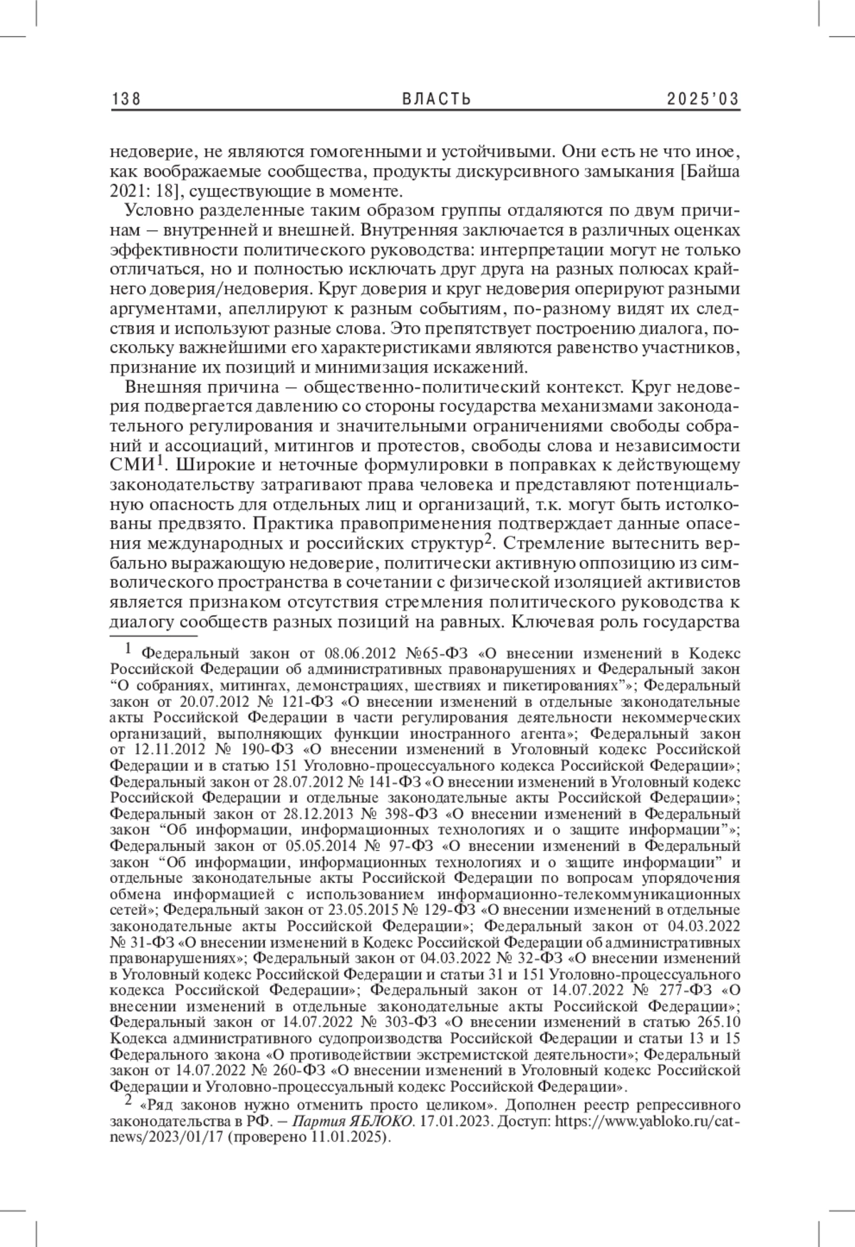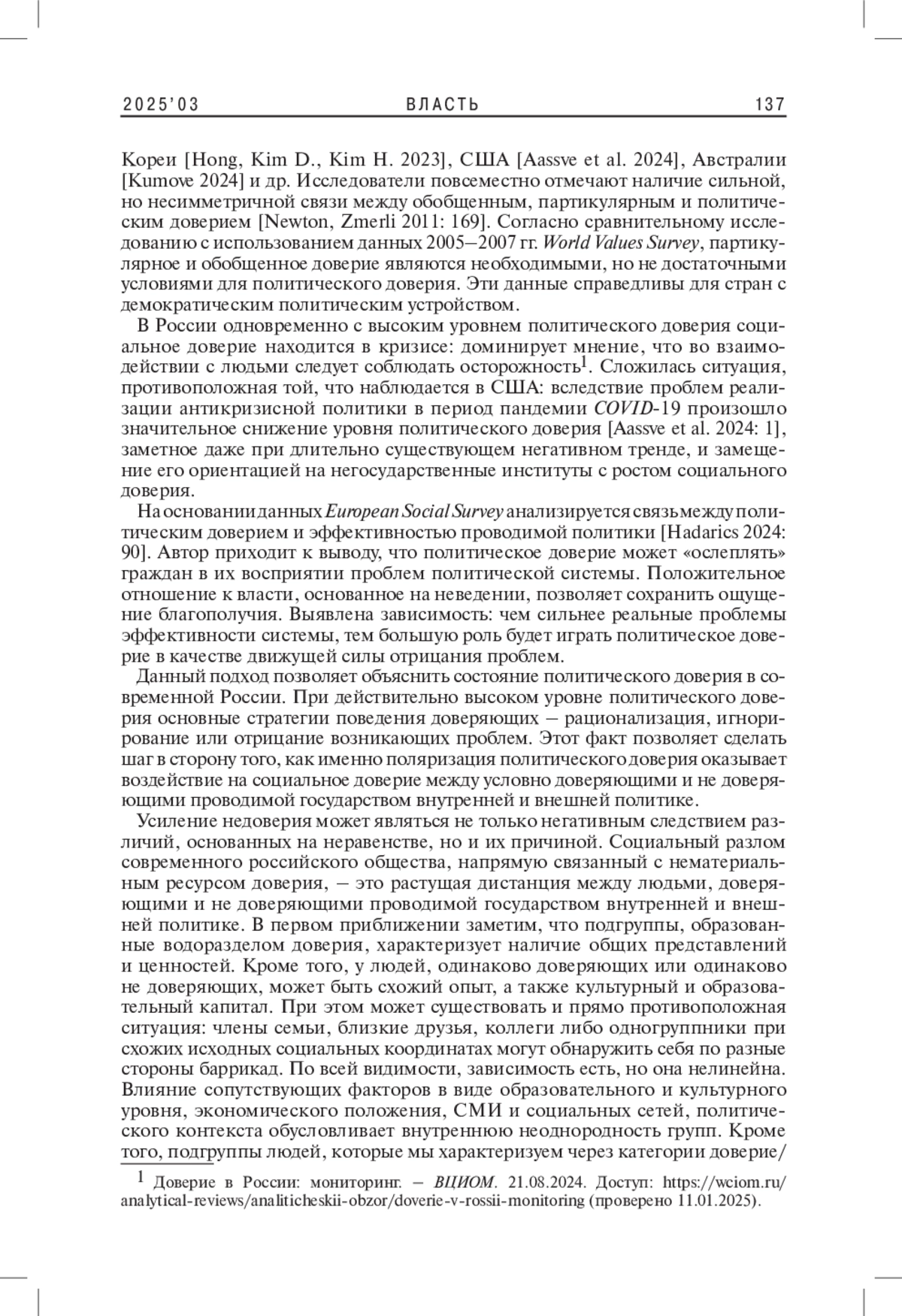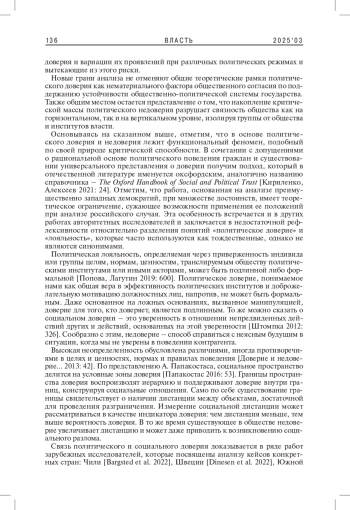 3. 	Кириленко В.П., Алексеев Г.В. 2021. Измерение политического доверия в условиях современной демократии. - Управленческое консультирование. № 10. С. 22-34. EDN: ATXPUA