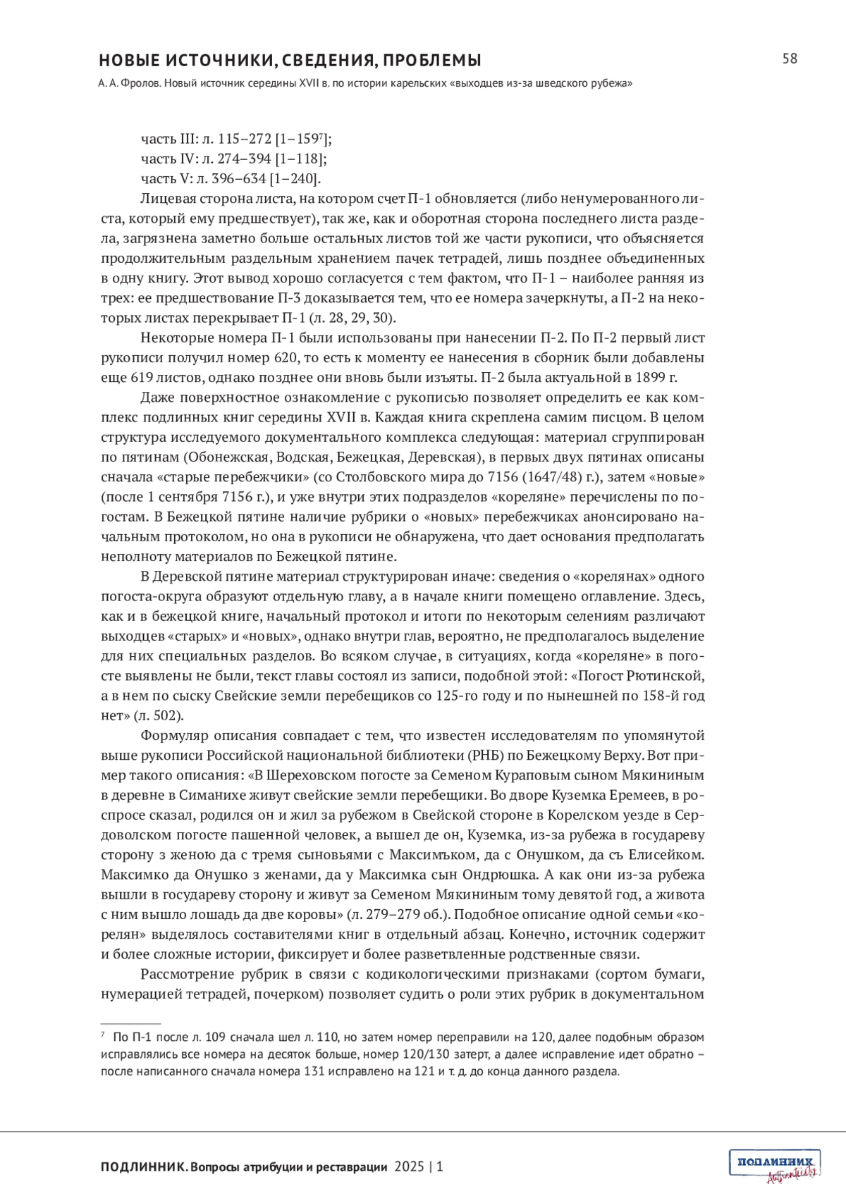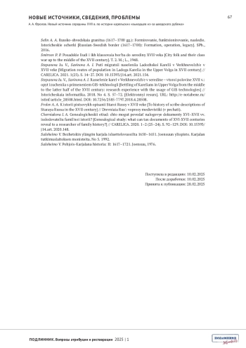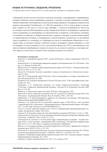 15. Фролов А. А. К истории писцовых описаний Старой Руссы в XVII веке // Древняя Русь. Вопросы медиевистики. 2024. № 1(95). С. 139-150.