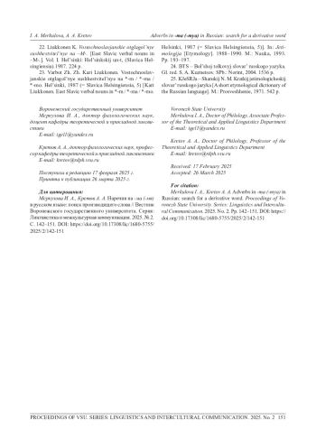 8. Черепанова О. А. Об одном непродуктивном типе наречий в русском языке // Исследования по грамматике русского языка. Л., 1973. Вып. 5. С. 198-214.