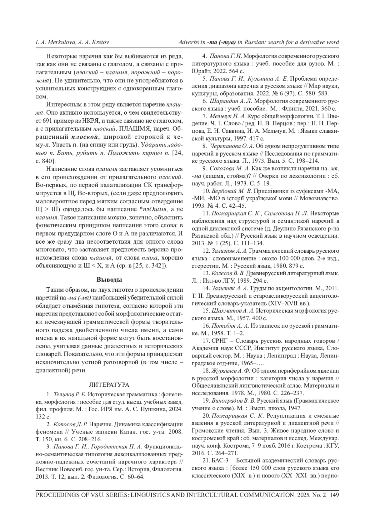 10. Вербовий М. В. Прислiвники iз суфiксами -МА,-МИ, -МО в iсторiї української мови // Мовознавство.1993. № 4. С. 42-45.