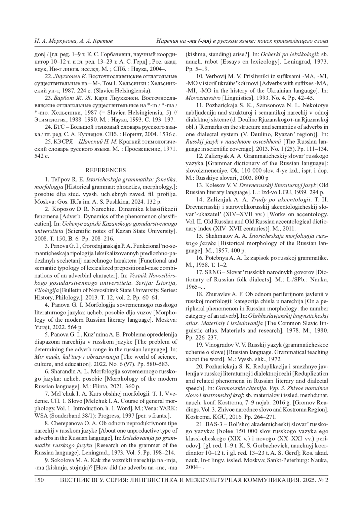 7. Мельчук И. А. Курс общей морфологии. Т. I. Введение. Ч. 1. Слово / ред. Н. В. Перцов; пер.: Н. Н. Перцова, Е. Н. Саввина, И. А. Мельчук. М.: Языки славянской культуры, 1997. 417 с. EDN: SUMCGB