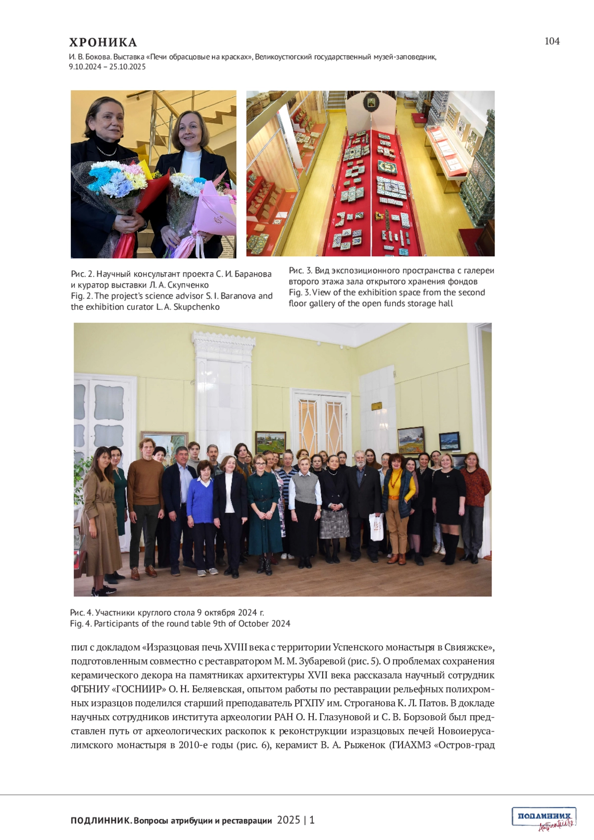 «Печи обрасцовые на красках» – выставка с таким названием открылась 9 октября 2024 года в зале открытого хранения фондов Великоустюгского государственного музея-заповедника и представляет художественную традицию, присущую изразцовому делу Великого Устюга. Ее оригинальные черты раскрывают предметы из коллекции музея, насчитывающей более пяти тысяч экспонатов. На выставке представлено более трехсот предметов. Это отдельные изразцы, печные клейма и полностью сохраненные печные комплекты, многие из которых экспонируются впервые. Впервые показаны архивные документы, рисунки, фотографии из музейных и частных архивов и коллекций. В их числе фотографии изразцовых печей и печные комплекты, атрибуция которых стала возможной благодаря материалам архива А. В. Филиппова, предоставленным доктором искусствоведения Е. А. Бобринской (рис. 1).