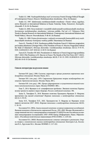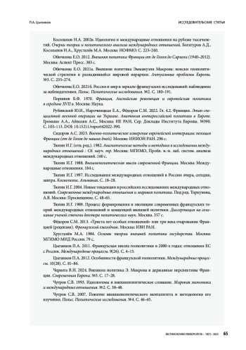 41. Чернега В.Н. 2024. Внешняя политика Э. Макрона и державные перспективы Франции. Современная Европа. 3:17-28.