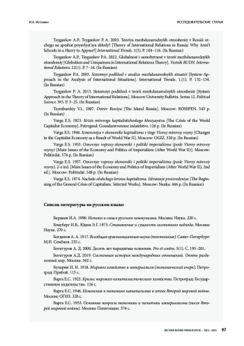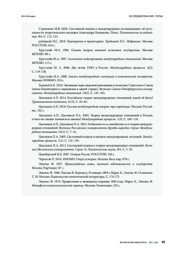 47. Стрежнева М. В. 2020. Системный подход в международных исследованиях: об актуальности теоретического наследия Александра Богданова. Полис. Политические исследования. 4. С. 112-123. рубецкой Н.С. 2010. Идеократия и пролетариат. Трубецкой Н.С. Избранное. М.: РОССПЭН. 616 с.