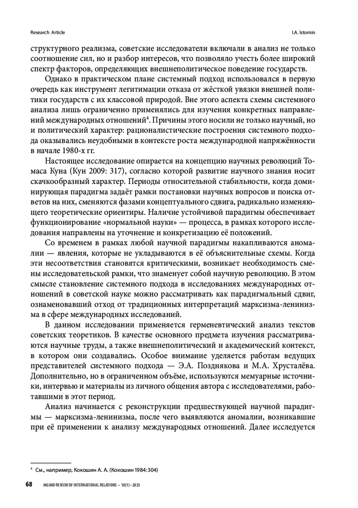 34. Косолапов Н. А. и др. 2021. О попытке создания теории международных отношений в ИМЭМО в 1970-е годы. Мировая экономика и международные отношения. 65(4). С. 80-91. Кун Т. С. 2009. Структура научных революций. М.: АСТ. 317 с.