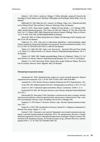 8. Kyriacou С. 2019. Tolstoy’s Implicit Moral Theory: An Interpretation and Appraisal. Russian Literature. 106, May-June. P. 117-138. https://doi.org/10.1016/j.ruslit.2019.06.007