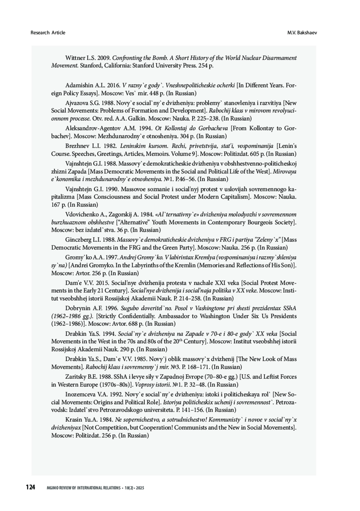 17. Wittner L.S. 2000. Reagan and Nuclear Disarmament. How the Nuclear Freeze movement forced Reagan to make progress on arms control. Boston Review. URL: https://www.bostonreview.net/forum_response/lawrence-s-wittner-reagan-and-nuclear-disarmament (accessed 18.03.2025)