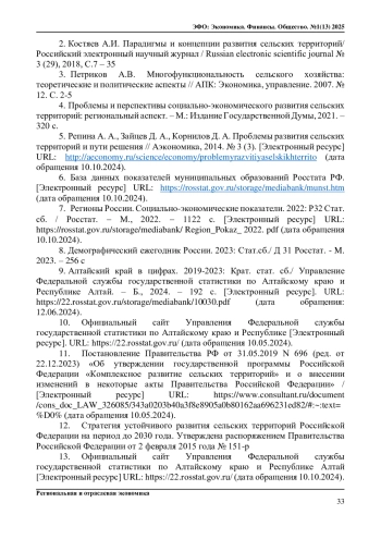 5. Репина А. А., Зайцев Д. А., Корнилов Д. А. Проблемы развития сельских территорий и пути решения // Аэкономика, 2014. № 3 (3). [Электронный ресурс] URL: http://aeconomy.ru/science/economy/problemyrazvitiyaselskikhterrito (дата обращения 10.10.2024). EDN: WMQMNJ