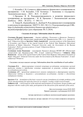 4. 	Тимур И., Курманбекова А., Досбаев Ч. Роль финансового планирования в деятельности предприятия // ВОГУЭ. 2021. №1 (1). [Электронный ресурс] URL: https://cyberleninka.ru/article/n/rol-finansovogo-planirovaniya-v-deyatelnostipredpriyatiya (дата обращения: 06.11.2024).