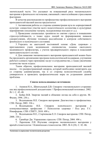 1. 	Аминов Н.А., Шпитальный Д.В. Синдром “эмоционального сгорания” как вид профессиональной дезадаптации // Профессиональный потенциал. 2002. № 1. С. 45-48.