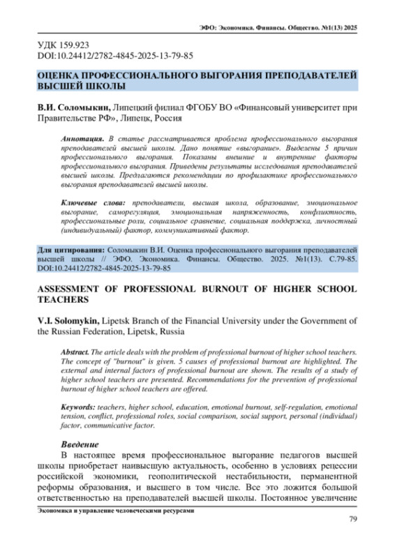 В настоящее время профессиональное выгорание педагогов высшей школы приобретает наивысшую актуальность, особенно в условиях рецессии российской экономики, геополитической нестабильности, перманентной реформы образования, и высшего в том числе. Все это ложится большой ответственностью на преподавателей высшей школы.
