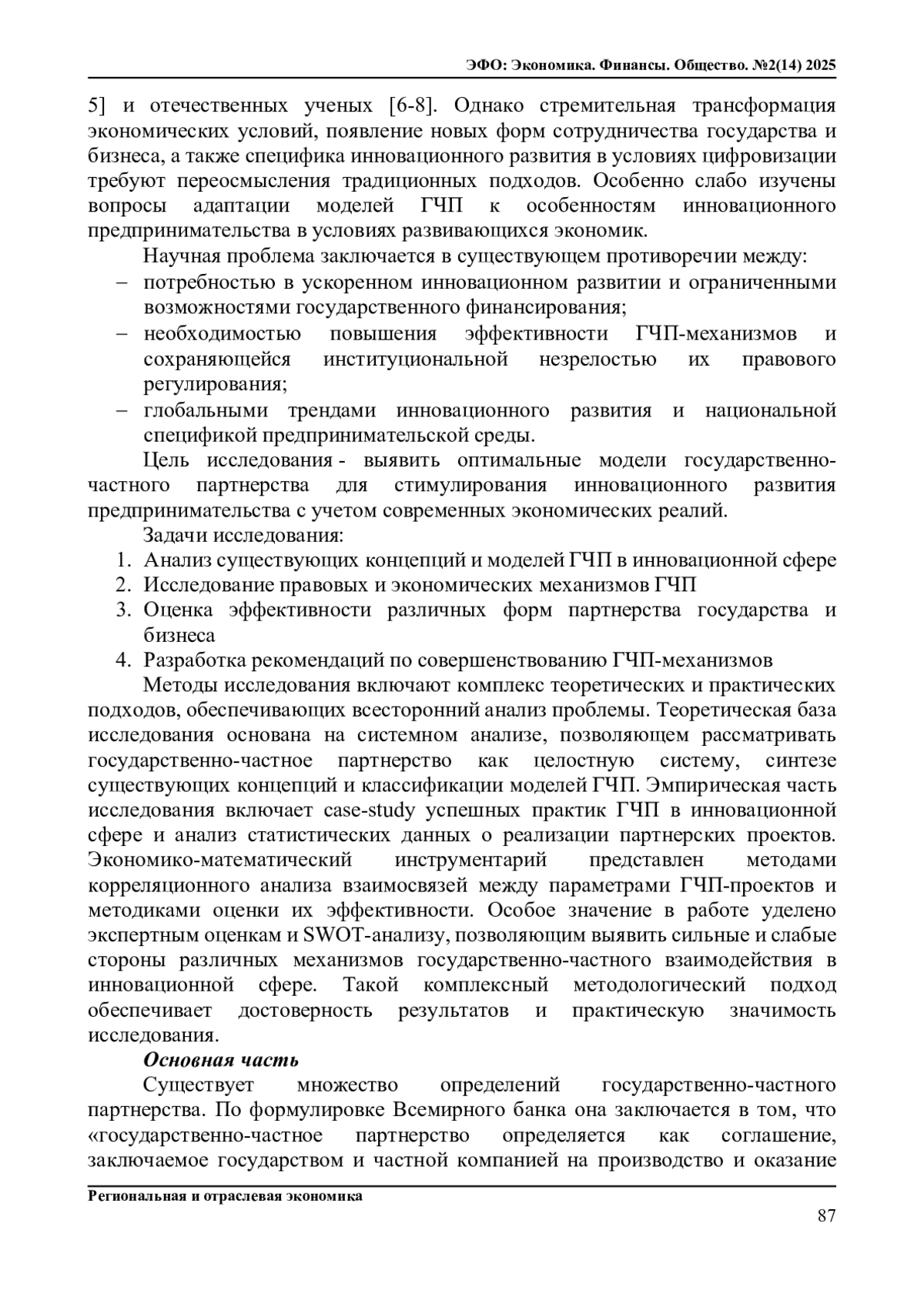 6. 	Турсунов И.Э., Хамроев Г.С. Государственно-частное партнёрство как модель инновационного развития предпринимательства // ELS. 2024. № 6. URL: https://cyberleninka.ru/article/n/gosudarstvenno-chastnoe-partnyorstvo-kak-model-innovatsionnogo-razvitiya-predprinimatelstva (дата обращения: 24.09.2024).