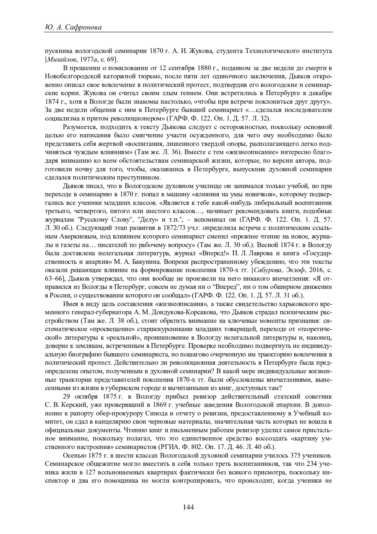 11. Рубцов А.А. Антиправительственное движение 1860-1870-х годов и деятельность органов политического дознания в Российской империи (законодательные нормы и следственная практика): дис. … канд. ист. наук. СПб., 2023. 224 с. EDN: HAPOVF