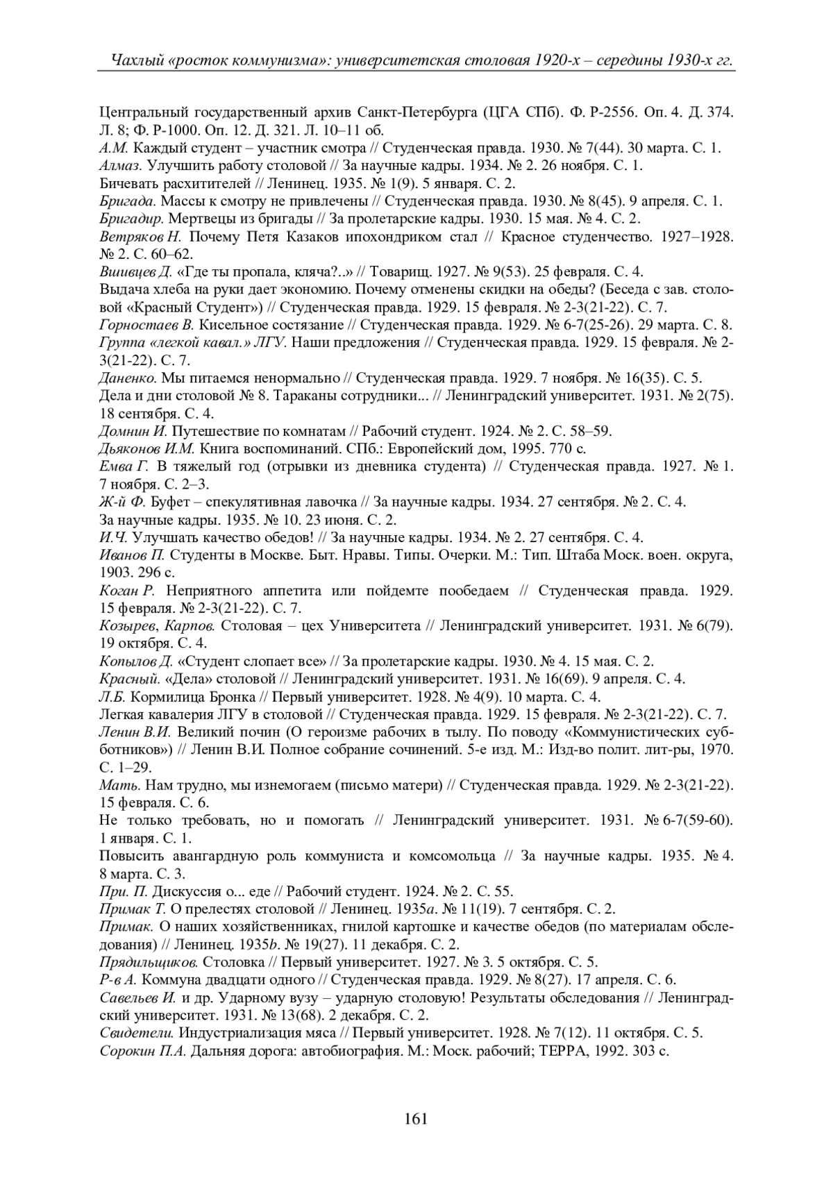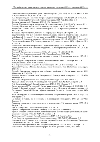 37. 	Савельев И. и др. Ударному вузу - ударную столовую! Результаты обследования // Ленинградский университет. 1931. № 13(68). 2 декабря. С. 2.