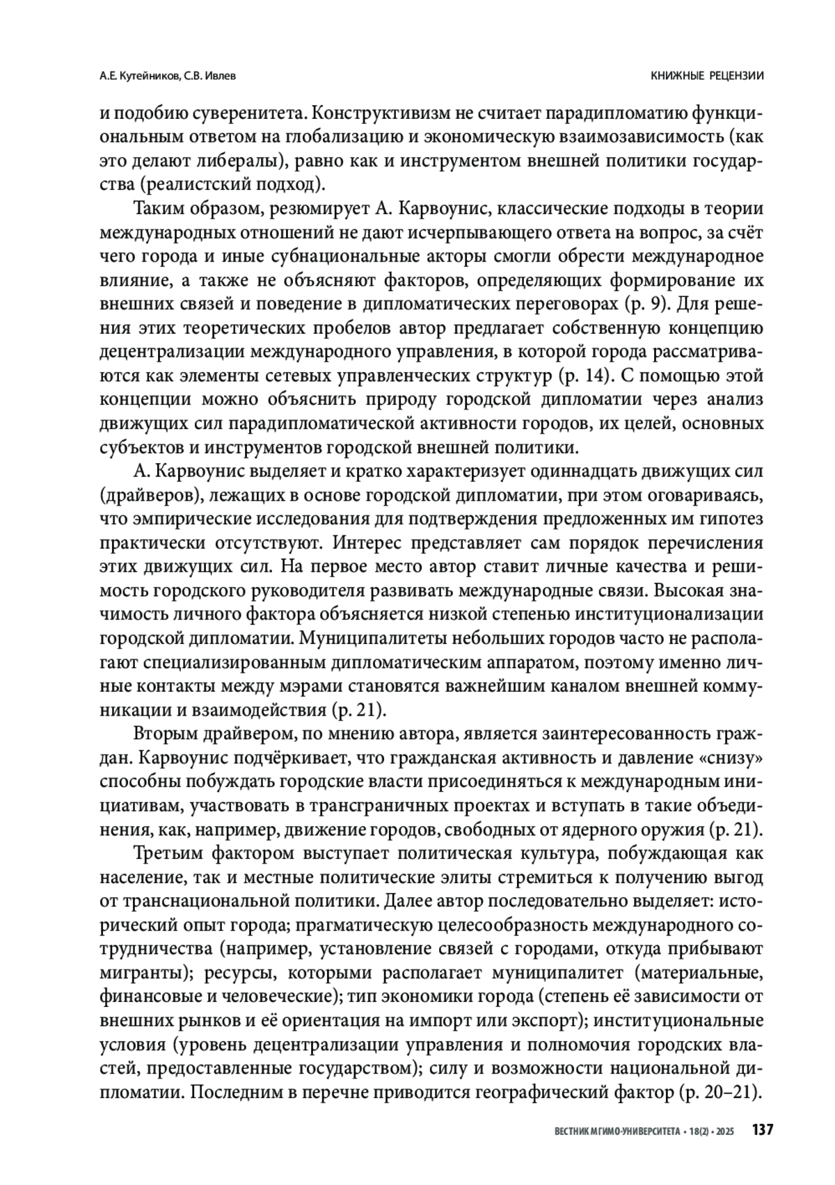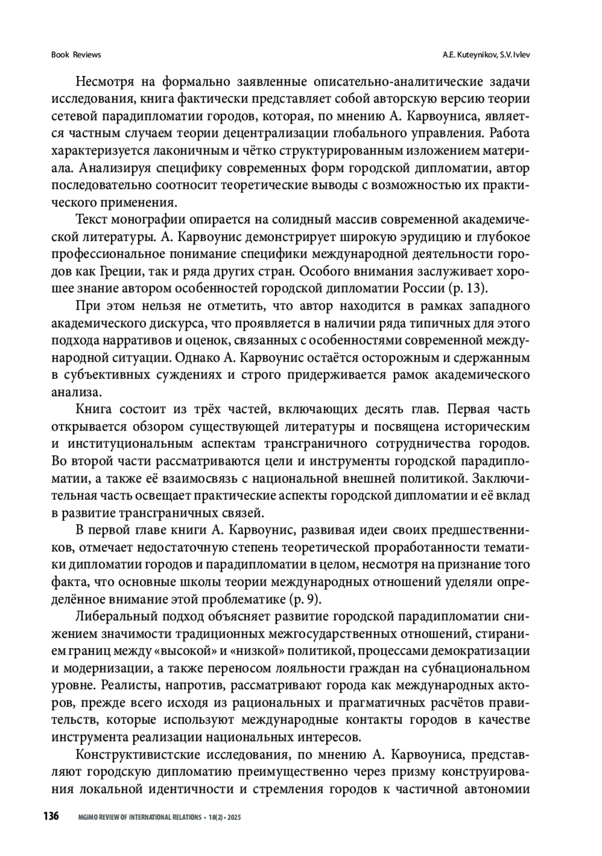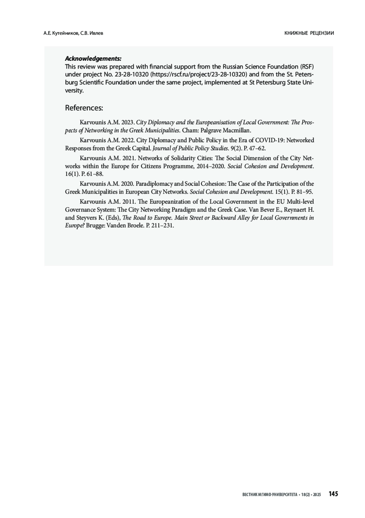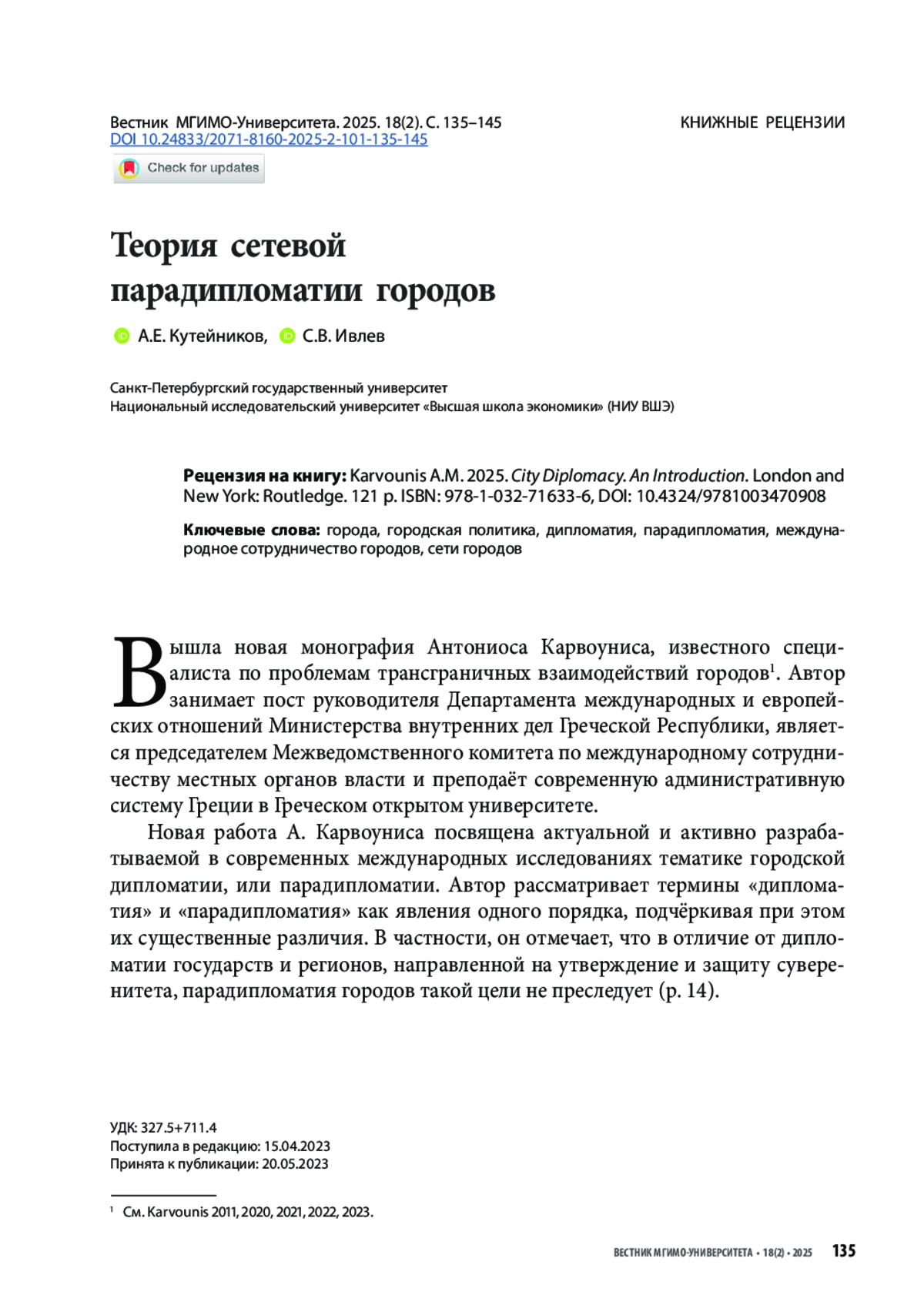 Рецензия на книгу: Karvounis A. M. City Diplomacy. An Introduction. London and New York: Routledge, 2025, 121 p. ISBN: 978-1-032-71633-6, DOI: 10.4324/9781003470908