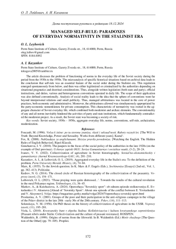 14. Казанков А.И., Лейбович О.Л. Агрегатная повседневность сталинской эпохи: к постановке проблемы // Вестник Пермского университета. История. 2019. № 4 (47). С. 74-84. DOI: 10.17072/2219-3111-2019-4-74-84 EDN: EYTZJV