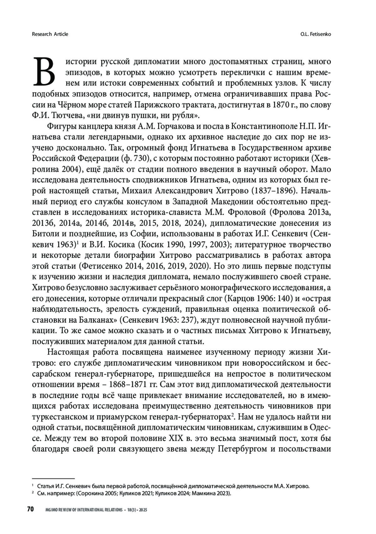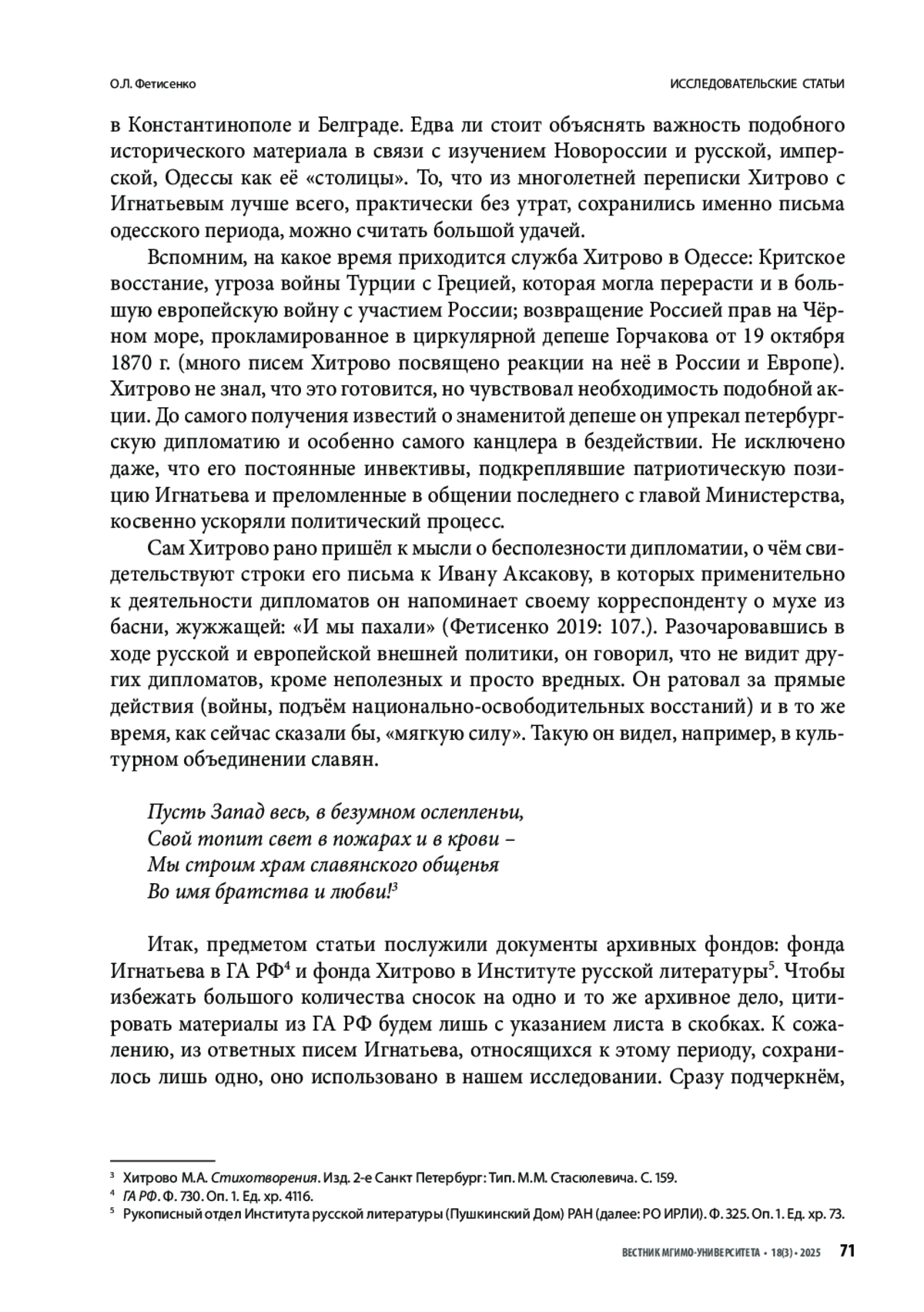 18. Фетисенко О.Л. 2019. Дипломат М. А. Хитрово - корреспондент И. С. Аксакова. Наше наследие. № 129/130. С. 100-113.