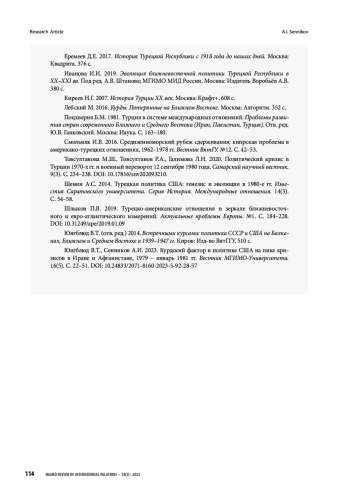 34. Шенин А.С. 2014. Турецкая политика США: генезис и эволюция в 1980-е гг. Известия Саратовского университета. Серия История. Международные отношения. Т. 14. Вып. 3. С. 54-58.