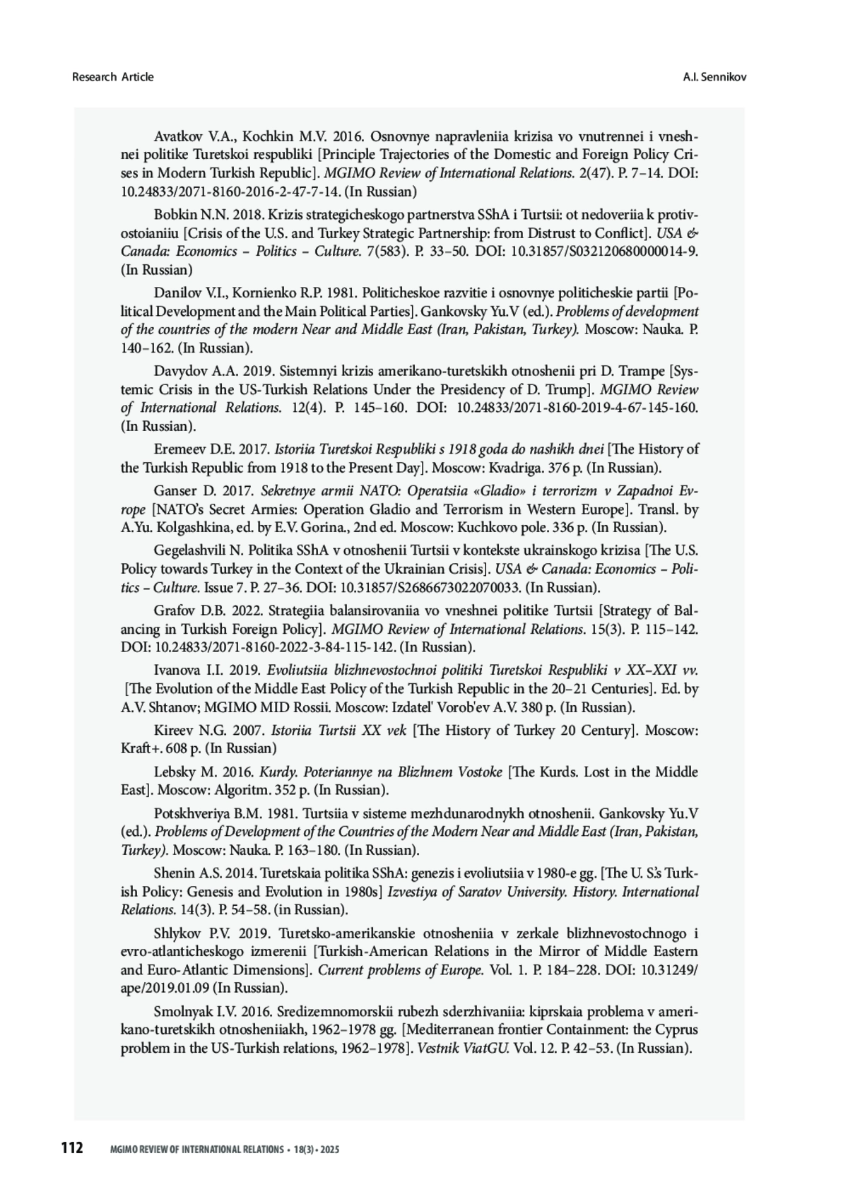 25. Давыдов А.А. 2019. Системный кризис американо-турецких отношений при Д. Трампе. Вестник МГИМО-Университета. № 12(4). С. 145-160. https://doi.org/10.24833/2071-8160-2019-467-145-160.