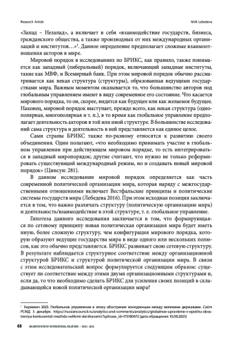 6. Li L. 2019. BRICS: A Limited Role in Transforming The World. Strategic Analysis. 43(6). P. 499-508. URL: https://sci-hub.se/10.1080/09700161.2019.1677017