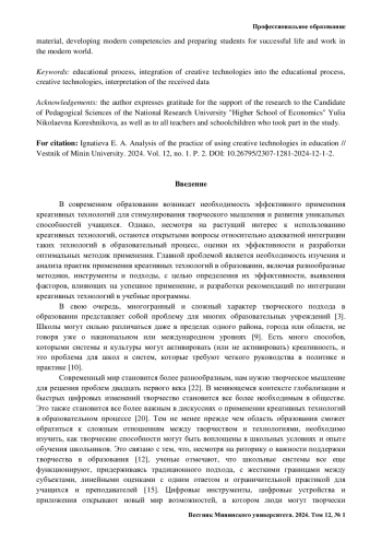 22. Page T., Thorsteinsson G. The impact of conventional school education on students creativity // I-Manager’s Journal on School Educational Technology. 2017. Vol. 13, no. 1. P. 12.