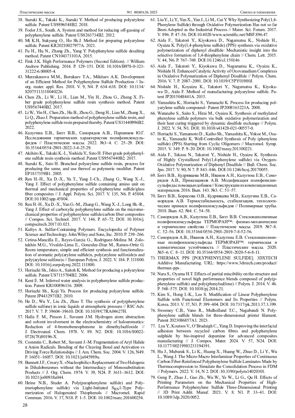 35. Rajan C.R., Ponrathnam S., Nadkarni V.M. Poly(pheny1ene Sulfide): Polymerization Kinetics and Characterization // J. Appl. Polym. Sci. 1986. V. 32. P. 4479-4490. DOI: 10.1002/APP.1986.070320416