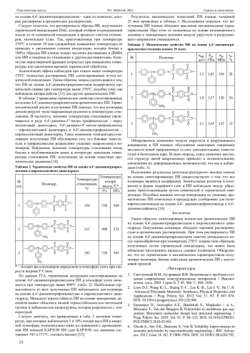 16. 	Chang J., Qiyan Ge Q., Zhang M., Weiwei Liu W., Li Cao L.,Niu H., Suib G., Dezhen Wu D. Effect of pre-imidization on the structures and properties of polyimide fibers // RSC Advances. 2015. N11. Р. 69555-69566. DOI: 10.1039/C5RA10943D