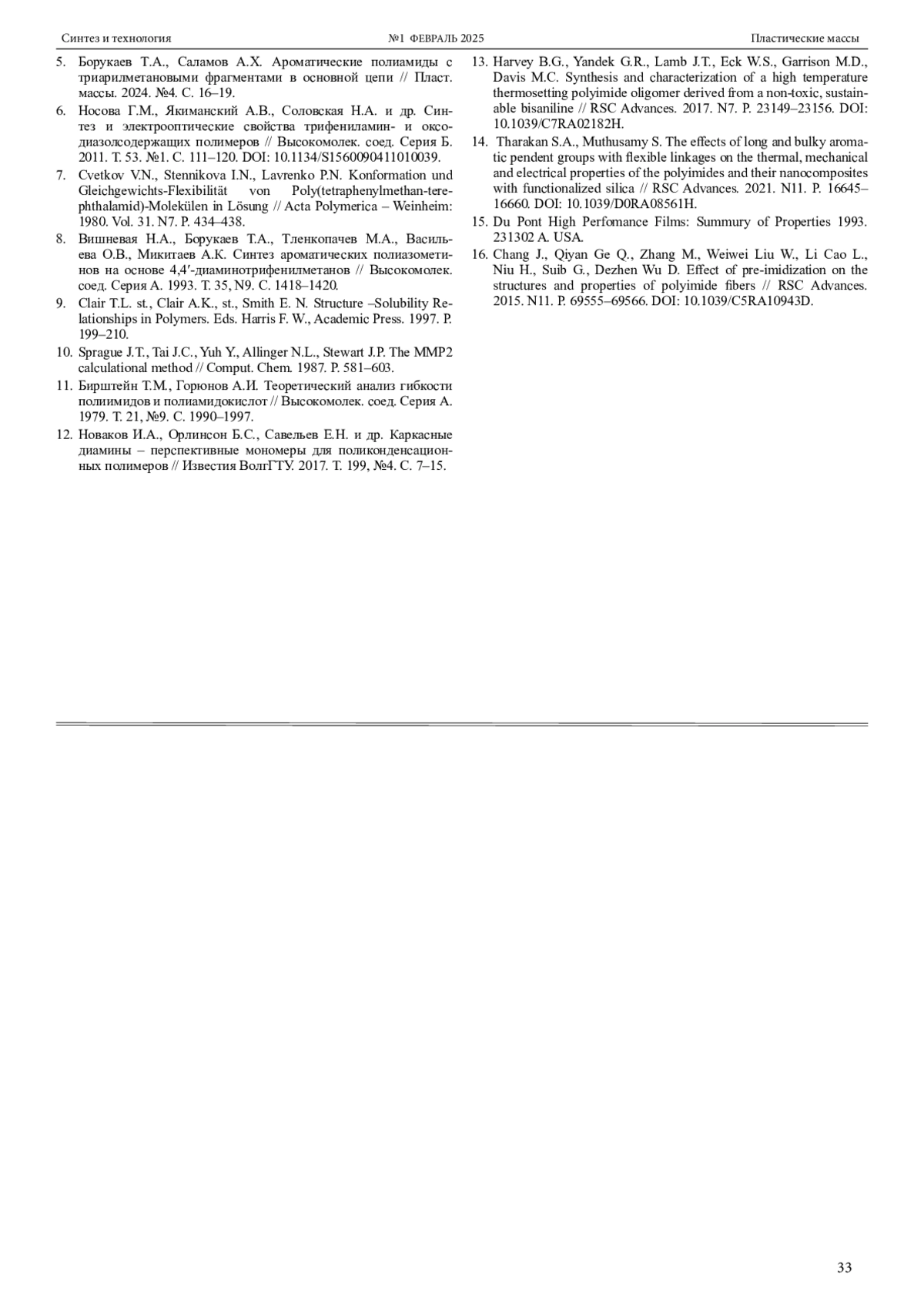 11. 	Бирштейн Т.М., Горюнов А.И. Теоретический анализ гибкости полиимидов и полиамидокислот // Высокомолек. соед. Серия А. 1979. Т. 21, №9. С. 1990-1997.