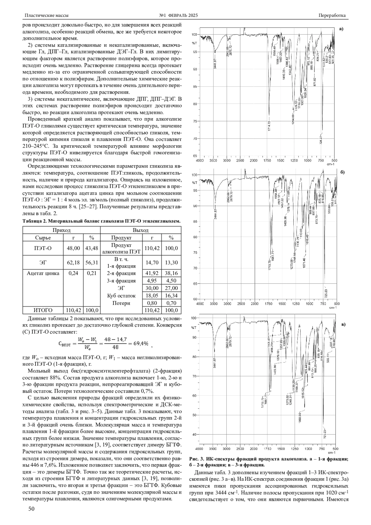 Один из наиболее распространенных видов упаковки – бутылки из полиэтилентерефталата (ПЭТ) – в больших количествах скапливается на свалках. Поэтому переработка бытовых отходов, содержащих ПЭТ, считается одной из возможностей решения важной экологической проблемы за счет сокращения их количества. Химическая утилизация ПЭТ-бутылок, в частности, гликолиз, является экологически чистой реакцией, поскольку не образует остатков. Степень деградации вторичного ПЭТ при гликолизе зависит, в частности, от природы катализатора [1–3].