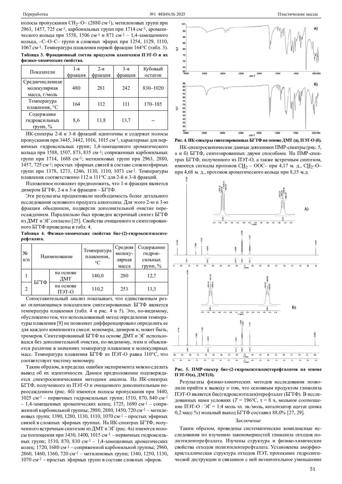 4. 	Moral A., Irusta R., Martín J M., Martínez L. Depolymerization of PET bottle wastes to produce high-value BHET monomer using ethylene glycol // Chemical engineering transactions. 2007. Vol. 11(6). Р. 479-484.
