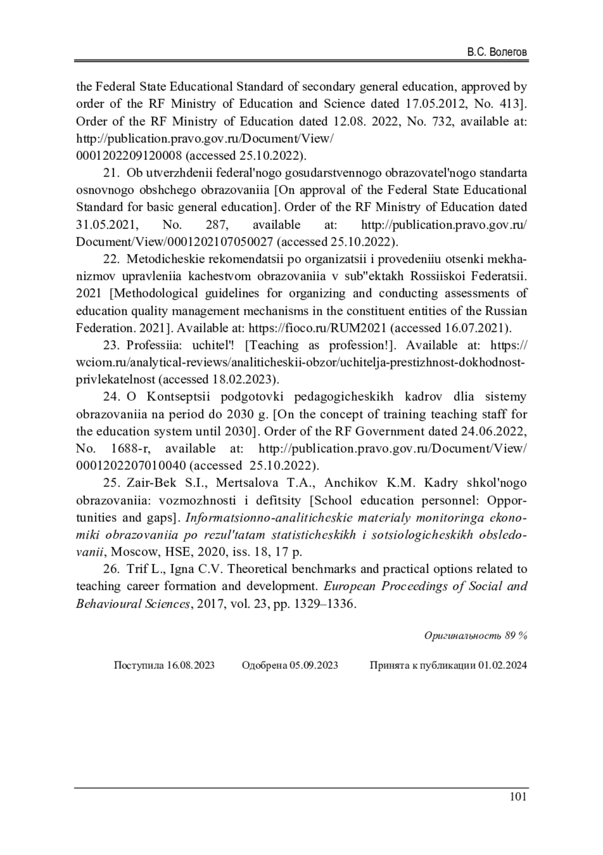 24. 	О Концепции подготовки педагогических кадров для системы образования на период до 2030 г. [Электронный ресурс]: Распоряжение Правительства РФ от 24 июня 2022 г. № 1688-р // Официальный интернет-портал правовой информации [веб-сайт]. - URL: http://publication.pravo.gov.ru/Document/View/0001202207010040 (дата обращения: 25.10.2022).