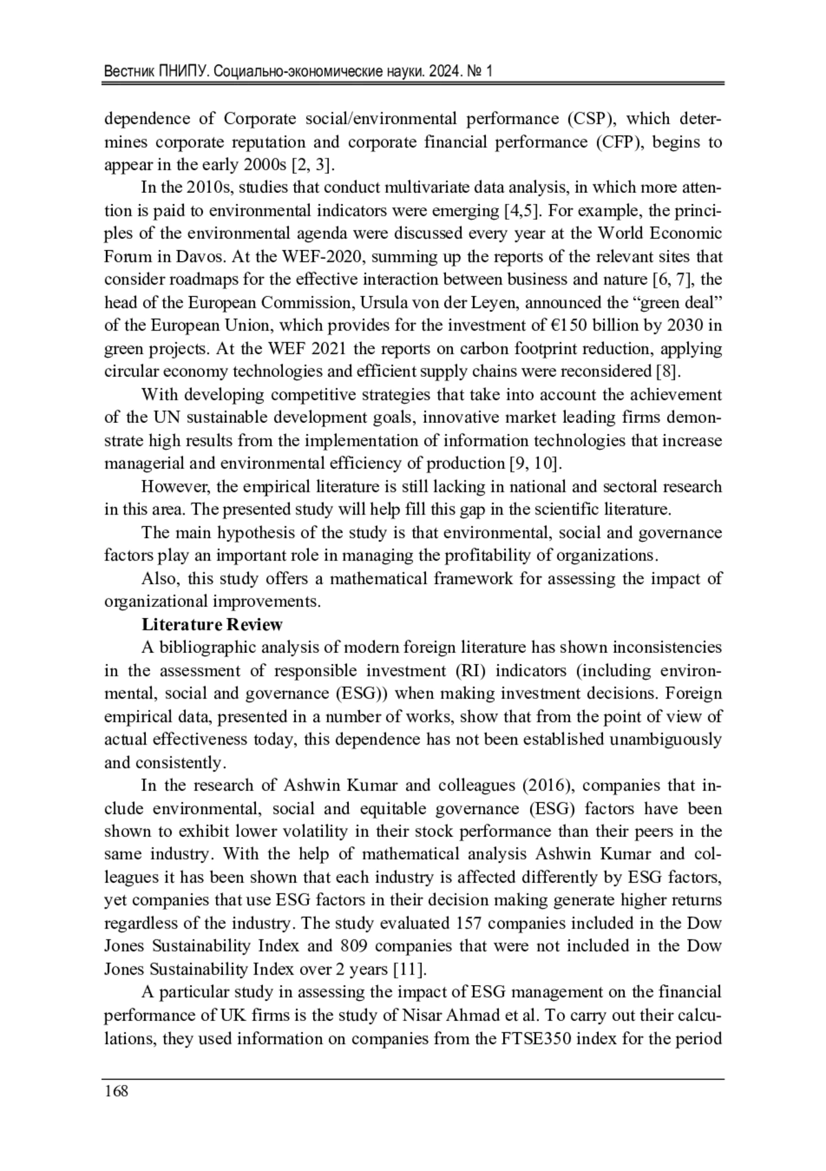 12. 	Revisiting the impact of ESG on financial performance of FTSE350 UK firms: Static and dynamic panel data analysis / A. Nisar, M. Asma, N. Naheed, W.K.T. Albert (Reviewing editor) // Cogent Business & Management. - 2021. - № 8 (1).  DOI: 10.1080/23311975.2021.1900500  EDN: NWPXMY