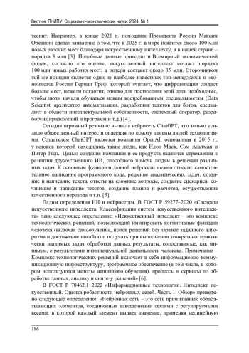 В настоящее время искусственный интеллект начинает занимать лидирующее место во многих областях нашей жизни, раскрывая перед человеком многообразные возможности его применения, улучшая качество человеческой жизни и расширяя горизонты самореализации человека. Появилась необходимость использования инновационной технологии в системе образования для повышения качества обучения студентов. Использование цифровых технологий в образовательной системе способствует решению ряда актуальных проблем, связанных с изменениями содержания традиционного обучения, недостаточным вниманием к удовлетворению индивидуальных потребностей студентов и необходимостью повышения результативности обучения. В статье представлено научное обоснование понятия «искусственный интеллект», раскрывается содержание научных подходов к изучению данной научной категории, которые проанализированы автором. Одновременно изучено мнение студентов Тюменского индустриального университета в отношении использования искусственного интеллекта в образовательном процессе, оценена практическая полезность данной технологии в сфере профессиональной подготовки будущих специалистов. Содержание статьи раскрывает потенциал цифрового образования в вузе, возможности создания креативной среды обучения с учетом применения информационно-коммуникативных технологий. Кроме того, автором обозначены основные сферы применения и векторы развития данной технологии в учебном процессе; указаны преимущества и выявлены потенциальные риски, возникающие в условиях использования искусственного интеллекта. Следует отметить, что недостаток опыта применения искусственного интеллекта не позволяет в полном объеме определить их. Однако результаты исследования способствуют пониманию важности использования инструментов искусственного интеллекта в процессе обучения студентов для формирования креативных навыков, являющихся необходимым элементом для успешного профессионального развития будущего специалиста, что порождает необходимость дальнейшего изучения данной проблематики,