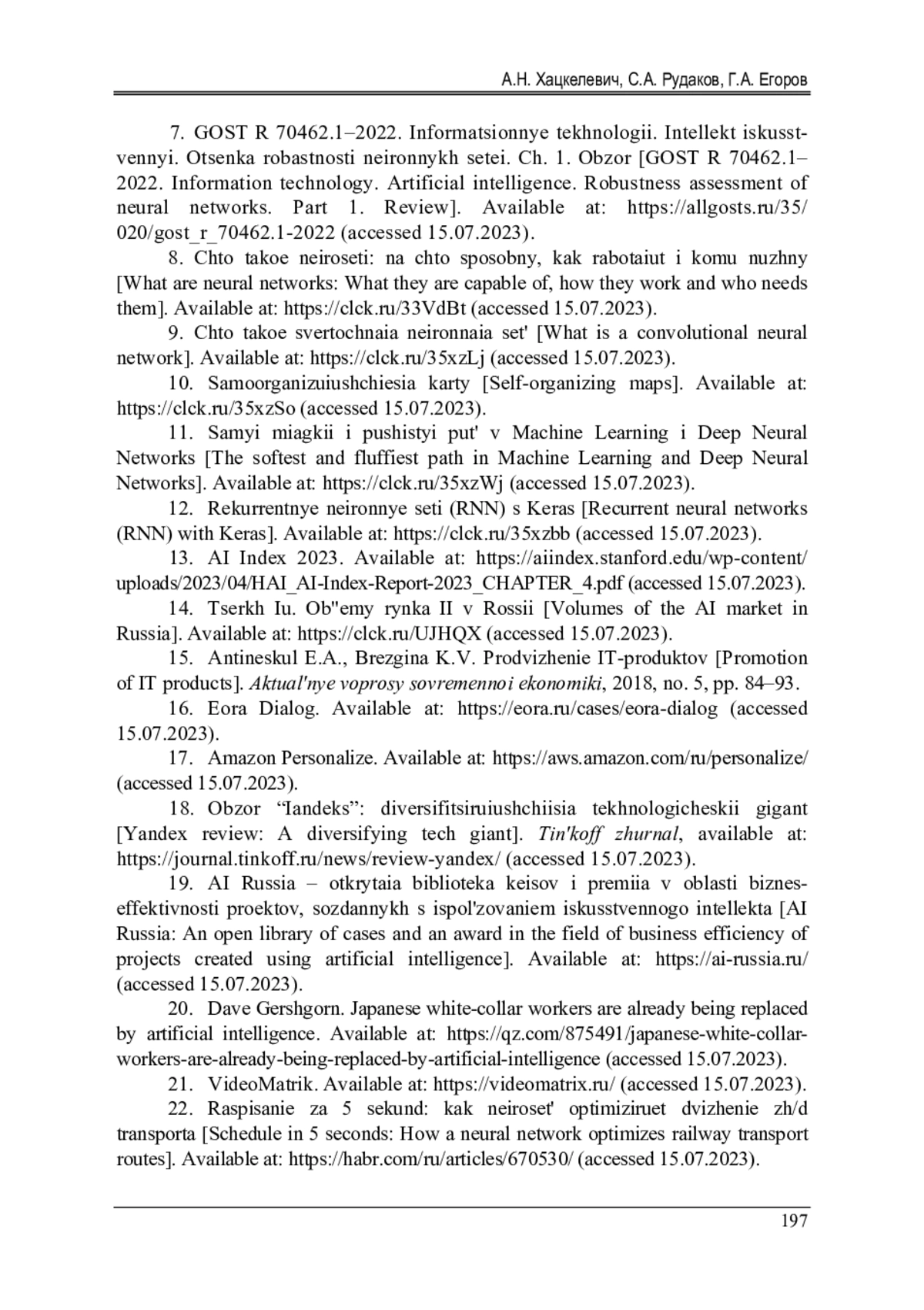 6. 	ГОСТ Р 59277-2020. Национальный стандарт Российской Федерации. Системы искусственного интеллекта [Электронный ресурс]. - URL: https://docs.cntd.ru/document/1200177292 (дата обращения: 15.07.2023).