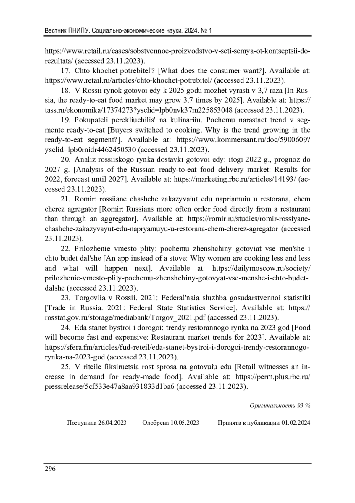 25. 	В ритейле фиксируется рост спроса на готовую еду [Электронный ресурс]. - URL: https://perm.plus.rbc.ru/pressrelease/5cf533e47a8aa931833d1ba6 (дата обращения: 23.11.2023).