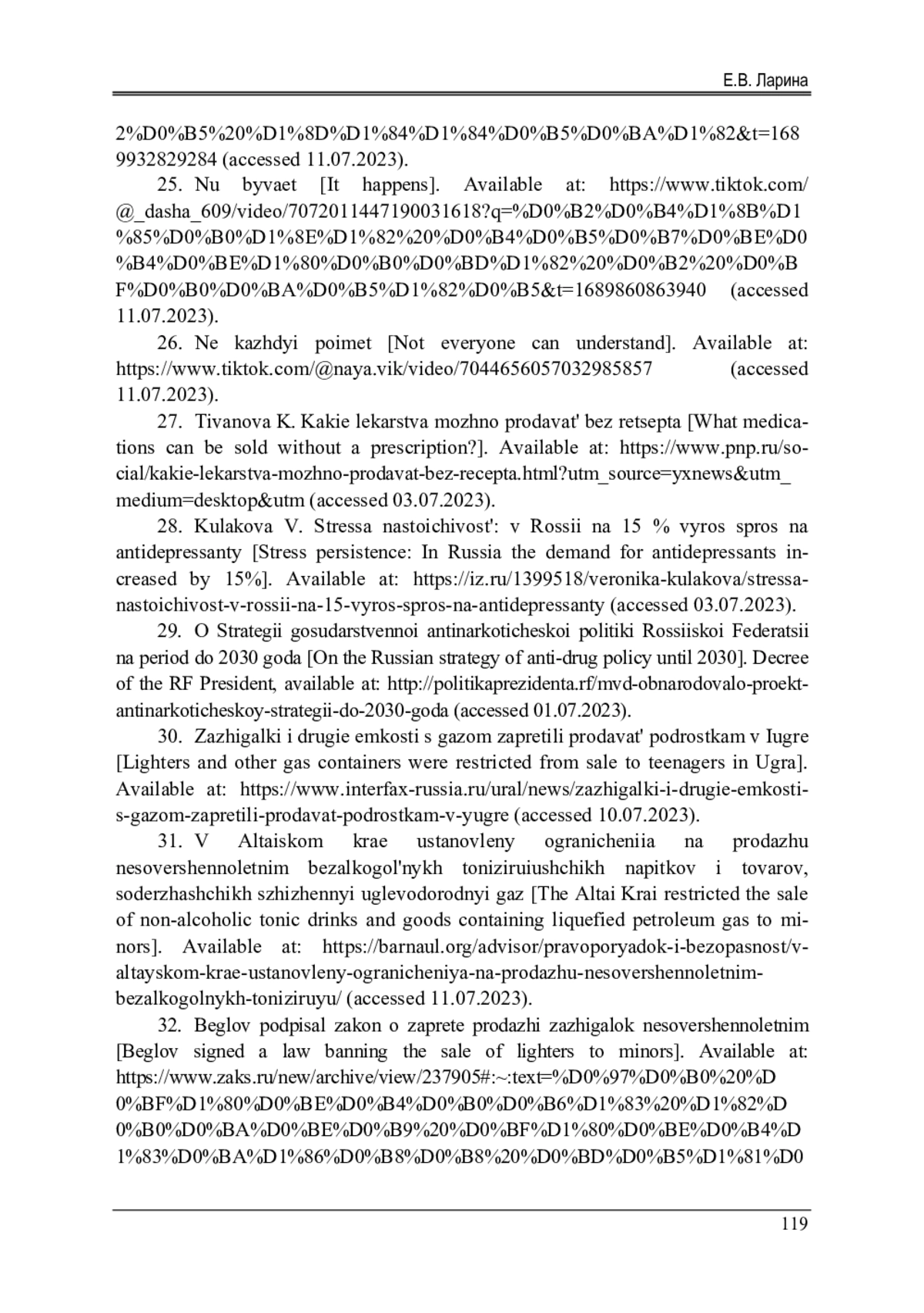 29. О Стратегии государственной антинаркотической политики Российской Федерации на период до 2030 года [Электронный ресурс]: Указ Президента Российской Федерации // Общероссийское общественное движение. - URL: http://политикапрезидента.рф/mvd-obnarodovalo-proekt-antinarkoticheskoy-strategii-do-2030-goda (дата обращения: 01.07.2023).